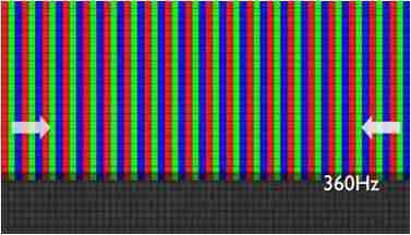传统液晶驱动是从左到右单向进行,,,在画面更新速度愈来越愈快的情况下,,位于驱动线路末端的右下角区域,,,,画素的闸极来不及在短时间内获得足够电压,,无法显示出正确的颜色资讯。。。。